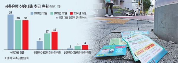 중신용자에 대해 대출을 내주지 않는 저축은행도 늘었다. 지난해 11월에는 신용점수 601~700점 구간에 해당하는 고객 대상으로 대출을 취급하지 않는 저축은행은 3곳(DB·IBK·동양저축은행)이었으나, 최근 DB저축은행·IBK저축은행·동양저축은행·푸른저축은행 등 4곳으로 확대됐다.