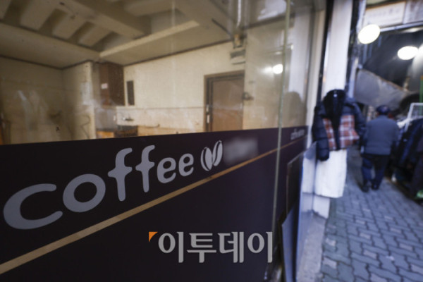 ▲비상계엄 등으로 소비심리가 크게 위축되면서 카페 등을 운영하는 소상공인이 큰 타격을 입은 것으로 나타났다. 17일 한국신용데이터의 ‘2024년 4분기 소상공인 동향’ 보고서에 따르면 지난해 4분기 외식업 가운데 카페 매출은 3분기보다 9.5% 급감한 것으로 조사됐다. 이날 서울 시내의 폐업한 한 카페가 공실로 비어있다. 조현호 기자 hyunho@