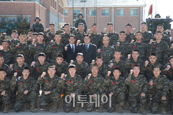 ▲우원식 국회의장이 19일 경북 포항시 해병대 제1사단 본부에 방문해 기념사진을 찍고 있다. 국회사진취재단