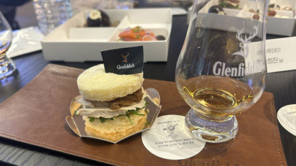 글렌피딕 18년은 셰리 오크통과 아메리칸 버번 오크통에서 숙성된 원액 중 150개를 엄선해 최소 3개월간 ‘메링 툰(Marrying Tuns)’에서 추가 숙성한 후 병입됐다. 각 생산 배치에는 개별 번호를 부여하며, 철저한 관리를 통해 일관된 맛과 고유한 개성을 유지한다. 글렌피딕 18년 잘 익은 과일, 꿀에 졸인 사과 향이 특징으로, 과일과 오크향이 살짝 떫은 맛과 함께 조화롭게 느껴졌다. 글렌피딕 18년과 잘 어울리는 페어링 조합은 치즈, 바비큐 등 기름진 음식이다. 미니 브리치즈와도 궁합이 좋았다.
