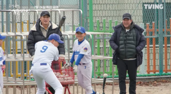24일 공개되는 티빙 오리지널 '최강야구 스핀오프, 김성근의 겨울방학'에서는 제주도로 여행 온 김성근 감독과 박용택, 이택근, 정근우, 김선우가 현지 어린이들을 위해 야구교실에 나서는 모습이 그려진다.
