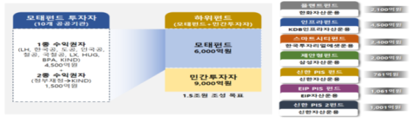 PIS 2단계 펀드는 우선 전체 규모의 10%에 해당하는 1100억 원의 정부 재정과 3300억 원의 공공기관 투자를 통해 모태펀드(모펀드)를 조성하고, 나머지 60%에 해당하는 6600억 원의 민간투자를 유치해 총 1조1000억 원의 하위펀드(자펀드)를 조성할 계획이다.