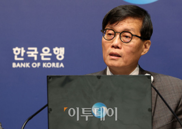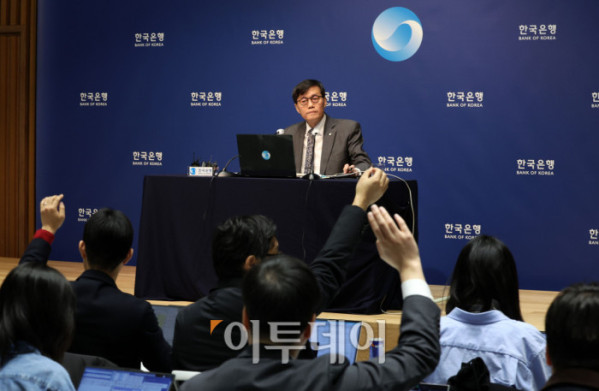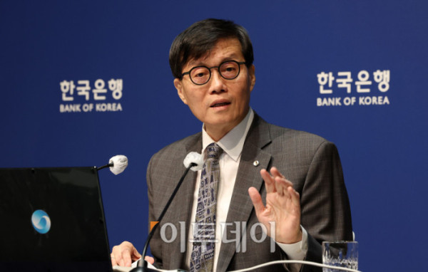 ▲이창용 한국은행 총재가 25일 서울 중구 한국은행에서 열린 통화정책방향 기자간담회에 참석하고 있다. 한은은 올해 두 번째 통화정책방향 회의를 열고, 기준금리를 연 3.00%에서 연 2.75%로 0.25%포인트 인하했다. 작년 10월과 11월 두 차례 기준금리를 인하했다. 사진공동취재단