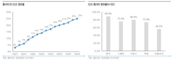 하 연구원은 “올해 최대 5개의 신규 시밀러를 순차적으로 출시할 예정”이라면서도 “신규 시밀러의 경우에도 유 플라이마 시장과 비슷하게 유럽 시장에서는 빠른 시장 침투가 가능할 것으로 판단되나, 미국의 경우 초기 시장 진입은 다소 더딜 것”이라고 했다. 공보험 제도와 입찰 시장 중심의 유럽과 달리 미국 시장은 사보험 중심이기 때문이다.