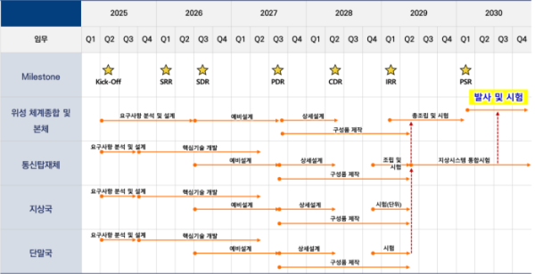 이에 과기정통부는 올해부터 6년간 3개 과제에 총 3200억 원을 지원한다. 응모자격은 실용급위성 이상의 위성시스템, 본체 및 구성품 중 하나 이상을 제작·납품한 실적이 있거나, 계약 및 개발하고 있는 연구기관 또는 기업이다.