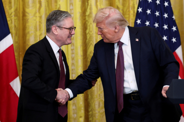 도널드 트럼프 미국 대통령과 키어 스타머 영국 총리가 27일(현지시간) 미국 워싱턴에서 첫 정상회담을 열고 양국 무역협정 체결을 논의했다. 합의에 이르면 영국은 트럼프 행정부의 무차별한 관세 폭격 속 유일한 안전지대가 될 전망이다.