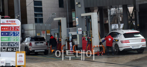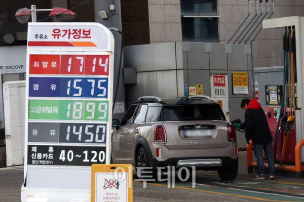 국내 주유소 휘발유와 경유의 주간 평균 가격이 3주 연속 하락했다. 3일 한국석유공사 유가정보시스템 오피넷에 따르면 2월 넷째 주 전국 주유소의 휘발유 평균 판매가격은 전주보다 4.2원 내린 리터(ℓ)당 1722.7원으로 집계됐다. 경유 평균 판매가는 전주보다 4.1원 하락한 리터(ℓ)당 1589원을 나타냈다. 사진은 이날 서울의 한 주유소. 고이란 기자 photoeran@