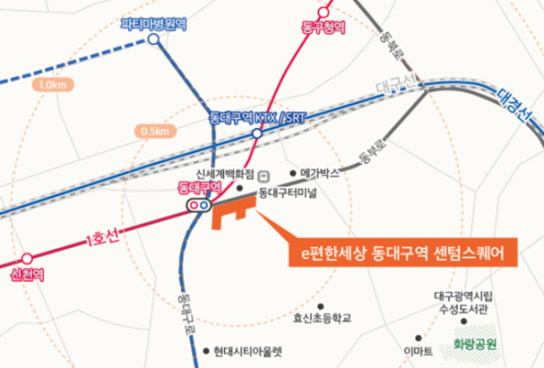 4일 DL이앤씨에 따르면 e편한세상 동대구역 센텀스퀘어는 대구 동구 신천동 일대에 지하 5층~지상 24층, 4개 동, 322가구 규모로 들어선다. 모든 가구는 일반분양으로 공급하며 이날 특별공급을 시작으로 5일 1순위, 6일 2순위 청약 접수를 각각 진행한다. 오는 11월 입주 예정인 후분양 단지로 현재 골조 공사까지 끝낸 상황이다.