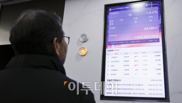 ▲국내 최초 대체거래소(ATS)인 넥스트레이드(NXT)가 운영을 시작한 4일 서울 영등포구 넥스트레이드 사무실에서 한 직원이 시장현황을 살펴보고 있다. 넥스트레이드는 KRX와 동시에 운영하는 정규 거래시간 전·후로 프리마켓(오전 8시~8시 50분)과 애프터마켓(오후 3시 30분~오후 8시)을 운영한다. 이에 따라 국내 하루 주식거래 시간은 12시간으로 현행 보다 5시간 30분 늘어난다. 단 개장 첫날엔 개장식 후에 서비스 제공이 시작되어 프리마켓 없이 운영을 시작했다. 조현호 기자 hyunho@