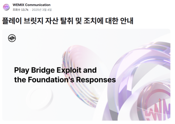 앞서 이날 새벽 위믹스 측은 공지를 통해 해킹 사실 및 경위, 대응 등에 대해 알렸다. 공지에 따르면 공격자는 2월 28일 13회에 걸쳐 총 865만4860개의 위믹스를 탈취해, 전날인 3일까지 약 863만 개를 7개 글로벌 거래소에 입금했다.