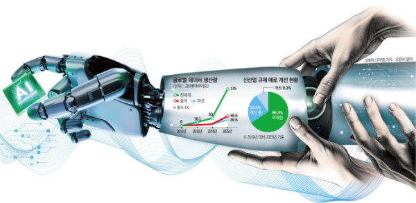 개선조차 더디다. 지난해 대한상공회의소는 ‘신산업 규제개선 현황과 과제 보고서’에서 신산업(핀테크, AI, 드론, 자율주행) 분야 86개 규제 개선여부를 추적한 결과, 개선율은 2019년 이후 4년간 9.3%에 불과했다고 밝혔다. 보고서는 “IT와 의료를 융합한 바이오·헬스 분야가 개인정보보호법, 의료법, 생명윤리법에 가로막히는 등 중복규제도 심각하다”고 평가했다. 구태언 코리아스타트업포럼 부의장은 “포지티브 규제 장벽이 기술 혁신을 저해하고 신산업 성장을 둔화시키고 있다”며 “‘데이터 산업’이라고 할 수 있는 이런 서비스가 막히니 데이터 축적이 안 되고, AI도 가로막히는 것”이라고 우려했다.