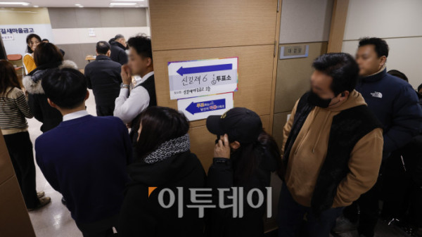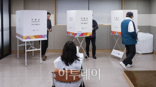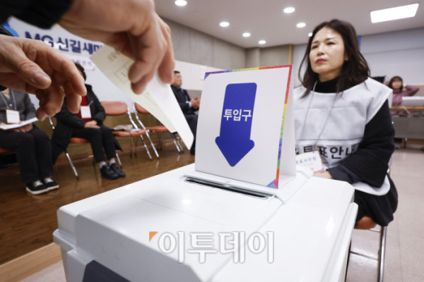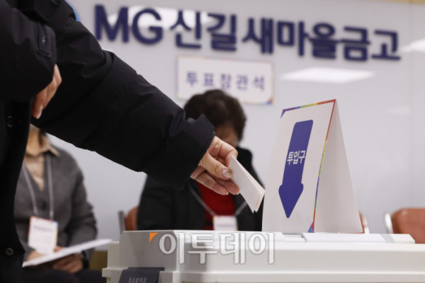 ▲제1회 전국동시새마을금고이사장선거 투표가 시작된 5일 서울 영등포구 신길새마을금고 본점에 마련된 신길제6동 투표소에서 시민들이 투표를 하고 있다. 이날 투표는 오전 7시~오후 5시까지 진행된다. 조현호 기자 hyunho@