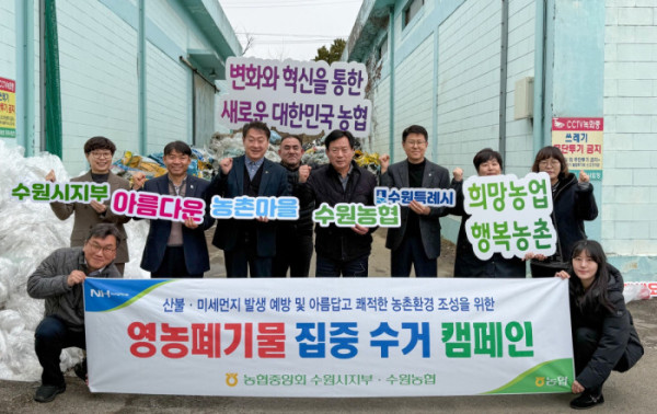 전종근 농협 수원지부장은 “영농폐기물 수거에 적극적으로 참여해준 조합원들과 캠페인에 함께해주신 모든 분들께 감사드리며, 깨끗하고 아름다운 농촌마을을 만드는데 농협이 앞장서서 노력하겠다”고 말했다.