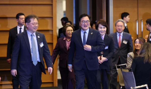 우원식 국회의장이 5일 서울 중구 대한상공회의소에서 열린 대한상의 여성기업위원회 창립총회를 찾아 여성기업인들과 인사를 나눴다.