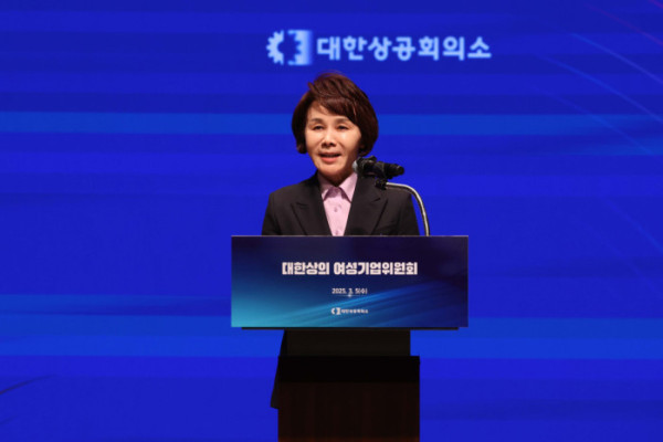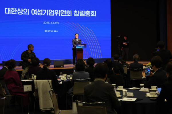 ▲우원식 국회의장이 5일 서울 중구 대한상공회의소에서 열린 대한상의 여성기업위원회 창립총회에 참석하고 있다. 신태현 기자 holjjak@