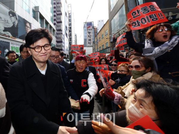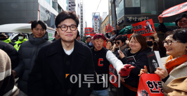 ▲한동훈 국민의힘 전 대표가 5일 서울 마포구 청년공간JU에서 열린 한동훈의 선택, 국민이 먼저입니다 발간 기념 북콘서트에 참석하며 지지자들과 인사를 나누고 있다. 조현호 기자 hyunho@