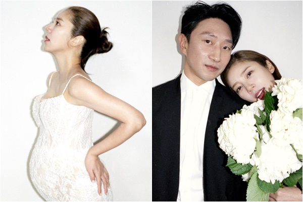 공개된 사진 속에는 몸에 밀착되는 흰색 드레스를 입고 만삭을 뽐내고 있는 손담비의 모습이 담겼다. 이외에도 꽃을 든 채 만삭의 배를 드러내거나 남편 이규혁과 단란한 미소를 짓고 있는 모습도 감겨 훈훈함을 안겼다.