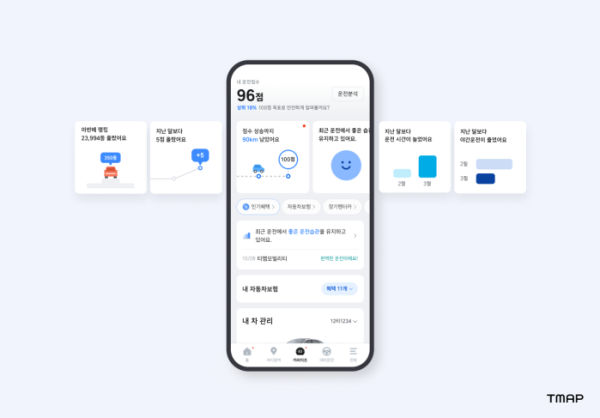 자동차 보험 할인 혜택에 대한 맞춤형 콘텐츠도 추가된다. 티맵은 사용자의 보험 만료일을 표시해 갱신 시기를 놓치지 않도록 지원한다. 현재 운전점수 및 주행거리에 따라 각 보험사에서 제공하는 할인 혜택도 제공한다. 티맵모빌리티는 국내 보험사들과 제휴해 운전점수 기반 특약 관련 국내 최대 구역을 갖췄다.