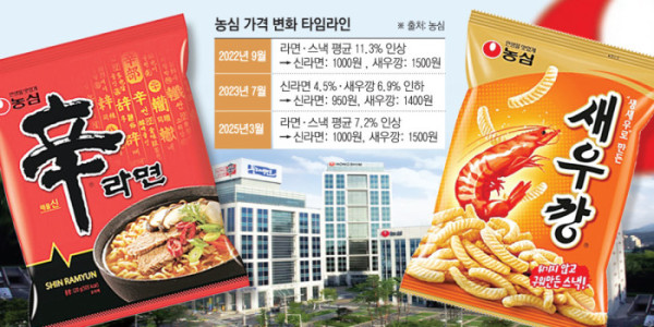 농심이 자사 대표제품인 신라면을 비롯한 라면과 스낵 73종에 대한 가격 인상에 나섰다. 2023년 7월 정부의 가격 인하 압박 속 제품 가격을 내린 뒤 1년 9개월 만의 가격 상향이다. 당시 함께 가격을 내렸던 오뚜기와 삼양식품, 팔도 등 다른 식품업체들도 가격 인상 움직임에 동참할 지 관심이 쏠리고 있다.