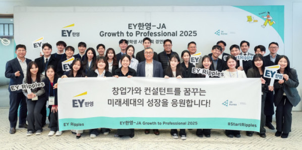 글로벌 회계·컨설팅 법인 EY한영은 대학생 사업계획 경연대회인 ‘EY한영-JA 그로스 투 프로페셔널(Growth to Professional)’의 약 7주 간의 여정을 성공적으로 마쳤다고 7일 밝혔다. 이 대회에는 컨설턴트 및 창업가를 꿈꾸는 대학생 50명과 EY한영 임직원 107명이 참여했다.