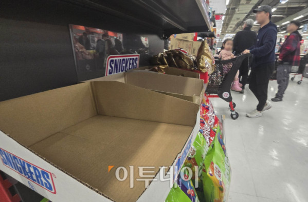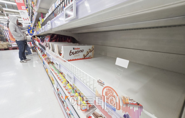 ▲9일 서울 시내 한 홈플러스 매장의 매대 곳곳이 비어 있다. 조현호 기자 hyunho@