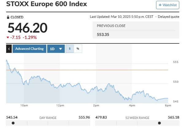 유럽증시는 10일(현지시간) 미국 관세 정책으로 인한 경기침체 우려로 일제히 아래를 향했다.