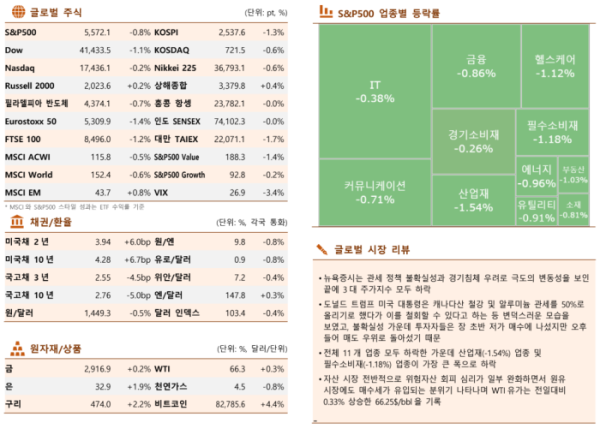[글로벌 증시요약] 뉴욕 증시, 관세 정책 불확실성ㆍ경기 침체 우려에 일제히↓
