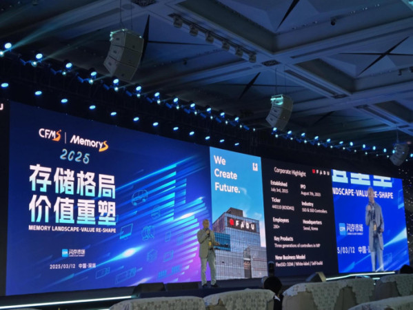▲12일 중국 선전에서 열린 '차이나 플래시 메모리 마켓 2025'에서 강러; 중국 법인장이 파두의 고객 니즈 최적화 솔루션 ‘플렉스 SSD’ 전략을 소개하고 있다. (자료제공=파두)