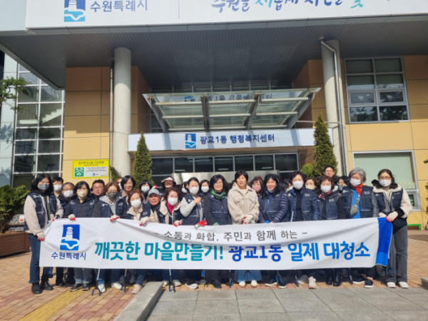 이날 광교1동 통장협의회, 동 단체장, 환경관리원 등 70여명이 참여, 야외 활동이 많아지는 봄을 맞아 겨울동안 묶은 먼지들을 청소하고, 유동인구가 많은 도청로와 광교중앙역을 중심으로 담배꽁초 및 쓰레기 집중 수거, 버스정류장 주변 정화 활동 등을 진행 쾌적한 마을 조성에 힘썼다.