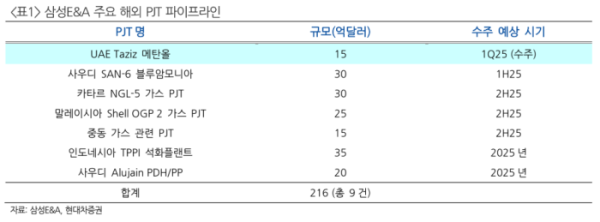 더불어 "수주 안건 역시 지속해서 확보 중이며, 총 216억 달러의 파이프라인 중 가스와 에너지전환(E/T) 관련 106억 달러(가스 70억, E/T 36억)로, 중단기 실적 관점에서도 수혜가 예상된다"라며 "최근 미국 액화천연가스(LNG) 투자 확대 등 글로벌 가스 개발은 빠르게 증가하는 추세인데, 동사는 텍사스 LNG PJT Pre-FEED와 FEED를 수행했으며, 다수의 중동 가스 PJT 경험을 축적했다"라고 밝혔다.