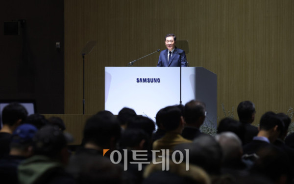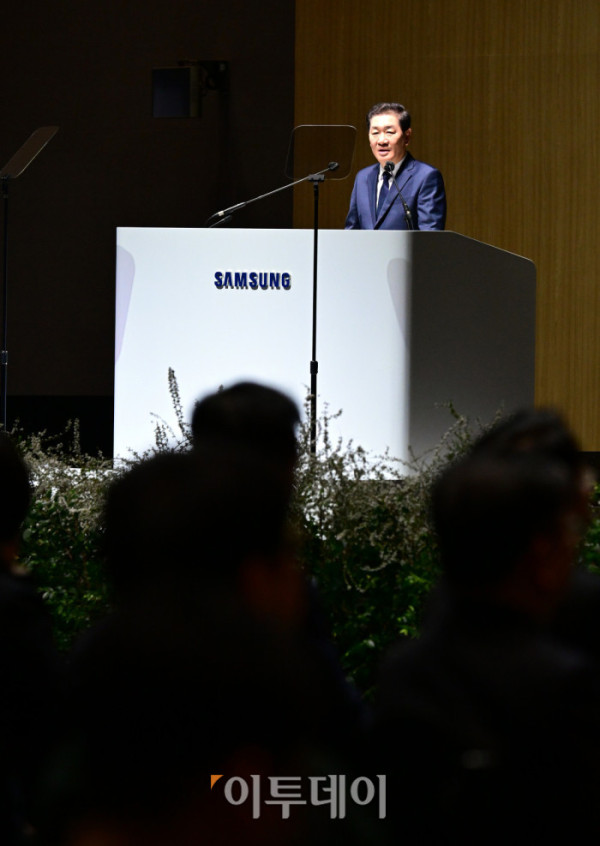 ▲한종희 삼성전자 부회장이 19일 경기 수원시 영통구 수원컨벤션센터에서 열린 제56기 삼성전자 정기주주총회에서 인사말을 하고 있다. 조현호 기자 hyunho@