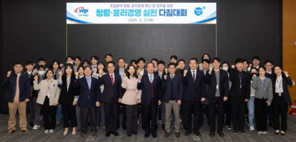다짐대회는 조달업무 담당 직원의 청렴 윤리 실천 선서와 서약서 서명을 시작으로 한창희 이케이(EK) 윤리지식연구소 청렴사회연구소 소장의 특강 등으로 진행됐다.