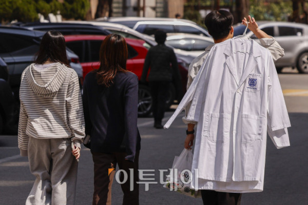 ▲정부가 정한 의대생 복귀 시한일인 31일 서울 종로구 서울대학교 의과대학에서 의대생들이 발걸음을 옮기고 있다. 빅5 의대(서울대·연세대·성균관대·카톨릭대·울산대)를 포함해 고려대와 국가거점국립대인 충남대·부산대 의대 휴학생들이 전원 돌아오면서 1년 넘게 이어진 집단휴학 사태도 마무리 국면에 들어서는 모양새다. 이날 각 대학에 따르면 가천대·건국대·계명대·단국대·대구가톨릭대·아주대·원광대·한양대가 등록·복학 신청을 마감한다. 이로써 4월 초·중순까지 신청 기한을 연장한 강원대와 전북대를 제외한 38개 의대가 이날까지 의대생 등록·복학 신청을 종료하게 됐다. 조현호 기자 hyunho@