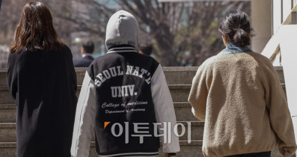 ▲정부가 정한 의대생 복귀 시한일인 31일 서울 종로구 서울대학교 의과대학에서 학생들이 발걸음을 옮기고 있다. 빅5 의대(서울대·연세대·성균관대·카톨릭대·울산대)를 포함해 고려대와 국가거점국립대인 충남대·부산대 의대 휴학생들이 전원 돌아오면서 1년 넘게 이어진 집단휴학 사태도 마무리 국면에 들어서는 모양새다. 이날 각 대학에 따르면 가천대·건국대·계명대·단국대·대구가톨릭대·아주대·원광대·한양대가 등록·복학 신청을 마감한다. 이로써 4월 초·중순까지 신청 기한을 연장한 강원대와 전북대를 제외한 38개 의대가 이날까지 의대생 등록·복학 신청을 종료하게 됐다. 조현호 기자 hyunho@