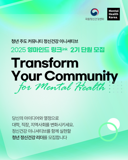 국립정신건강센터와 멘탈헬스코리아가 주최·주관하는 2025 정신건강 서포터즈 영마인드 링크 2기 모집이 진행 중이다.