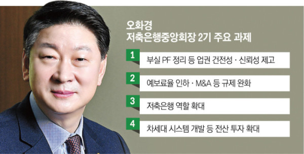이날부터 3년의 임기를 시작하는 오 회장은 부동산 프로젝트파이낸싱(PF) 부실 여파에 따른 업권 건전성 제고에 무게를 둘 계획이다.