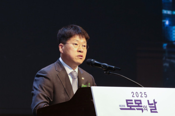 ▲ 31일 진현환 국토부 1차관이 대한토목학회에서 주최한 ‘제28회 토목의 날’ 행사에 참석해 발언하고 있다. (사진제공=국토교통부)