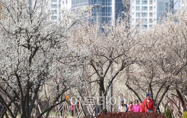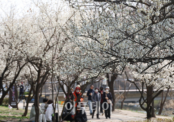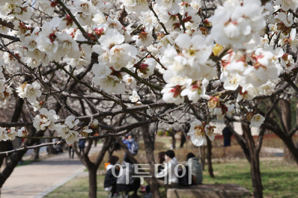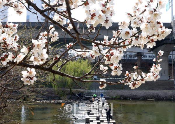 ▲따뜻한 봄바람이 불면서 꽃샘추위가 누그러진 19일 서울 성동구 청계천 하동매실거리에 매화가 활짝 피어있다. 기상청에 따르면 서울의 낮 기온은 14도로 당분간 예년 기온을 회복해 봄날씨가 이어질 예정이다. 고이란 기자 photoeran@