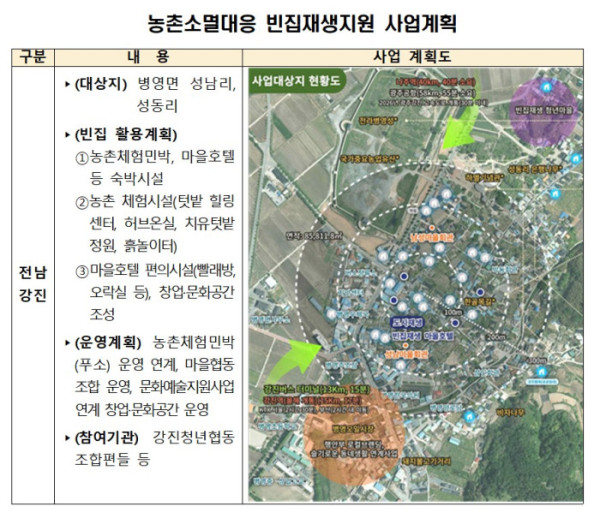 ▲농촌소멸대응 빈집재생사업 선정 지구 중 전남 강진군 사업계획. (사진제공=농림축산식품부)
