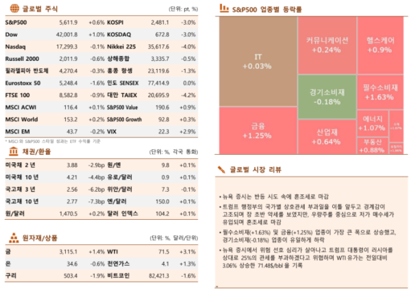 [글로벌 증시요약] 뉴욕증시, 상호관세 앞두고 저가 매수세 유입에 혼조세