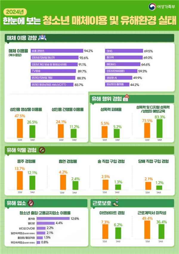여성가족부, '2024년 청소년 매체이용 및 유해환경 실태조사' 결과 발표