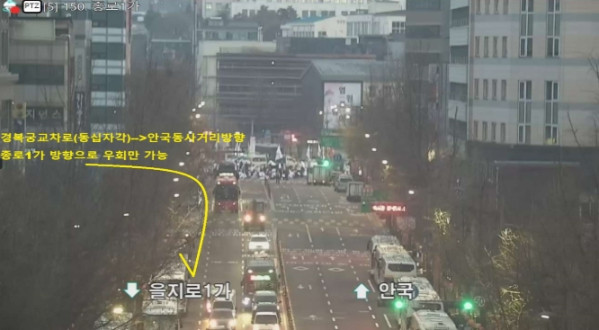 서울시 교통정보에 따르면 2일 헌재 일대 율곡로가 전면 통제됐다. 율곡로 월남동사거리→창덕궁교차로 진행방향은 전차로가 통제됐으며, 율곡로 안국동사거리와 경복궁교차로는 양방향이 집회 관련으로 전면 통제됐다. 현재 종로 1가 방향으로 우회만 가능하다.