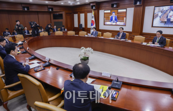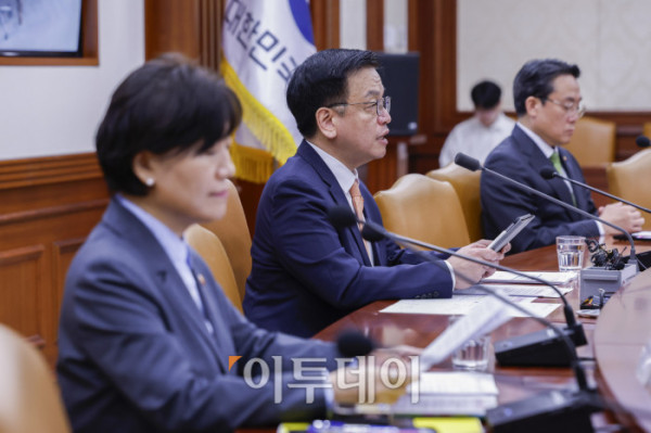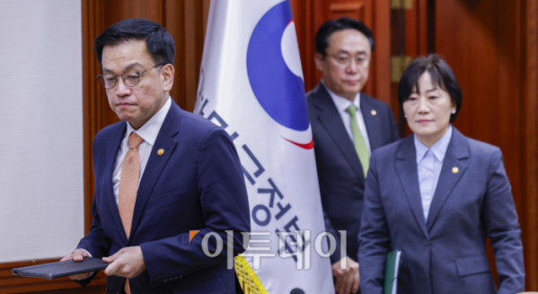 최상목(왼쪽부터) 경제부총리 겸 기획재정부 장관, 송미령 농림축산식품부 장관, 강도형 해양수산부 장관이 2일 서울 종로구 정부서울청사에서 열린 경제관계장관회의에 참석하고 있다. 조현호 기자 hyunho@