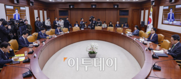 ▲최상목(왼쪽부터) 경제부총리 겸 기획재정부 장관, 송미령 농림축산식품부 장관, 강도형 해양수산부 장관이 2일 서울 종로구 정부서울청사에서 열린 경제관계장관회의에 참석하고 있다. 조현호 기자 hyunho@