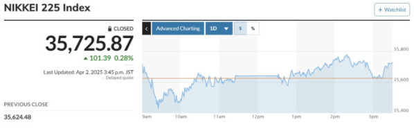 2일 아시아 주요 증시는 0%대 보합권에서 등락을 반복했다. 미국의 상호관세 발표가 예상보다 늦어지면서 변동성만 키웠다.