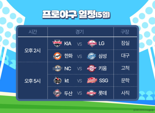한편 NC 다이노스와 키움 히어로즈는 각각 라일리 톰슨과 김윤하를 올린다. 두산 베어스는 최원준, 롯데 자이언츠는 박세웅을 각각 선발로 예고했다.