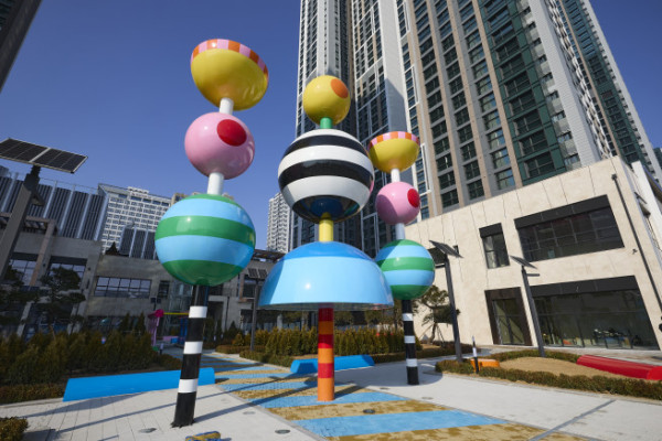 고덕 유보라 더 크레스트는 단지 곳곳에 세계적인 팝 아티스트 '크랙 앤 칼'과 협업한 다양한 조형물도 설치했다.