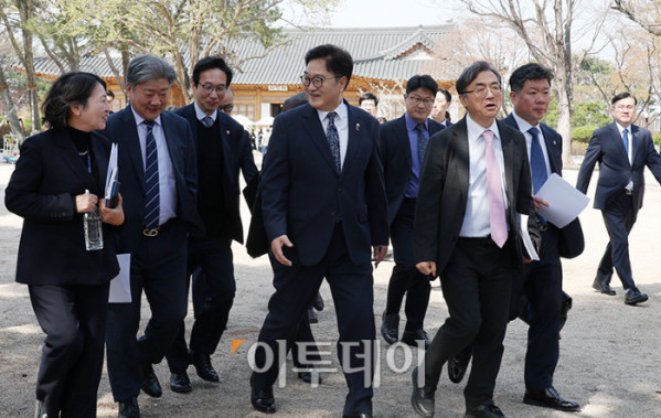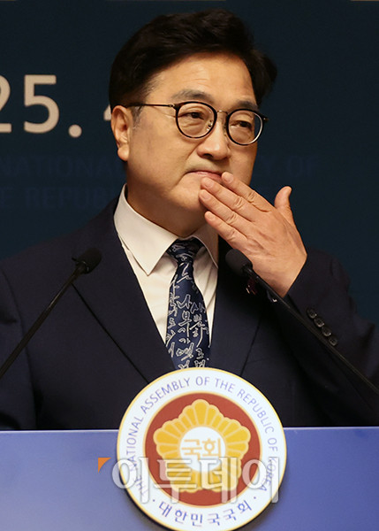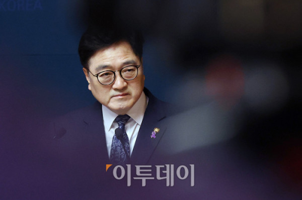 ▲우원식 국회의장이 6일 서울 여의도 국회 사랑재에서 개헌 특별 담화를 마치고 이동하고 있다. 이날 우 의장은 "국민주권과 국민통합을 위한 삼권분립의 기둥을 더 튼튼하게 세우기 위한 개헌이 필요하다"며 "이번 대통령 선거일에 개헌 국민투표를 동시에 시행할 것을 제안한다"고 말했다. 고이란 기자 photoeran@