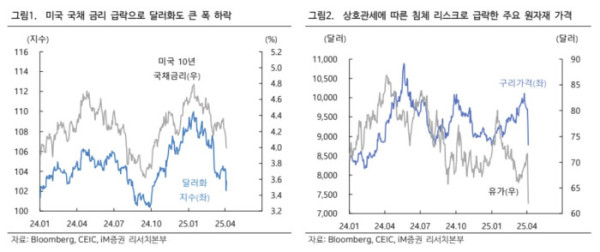 7일 iM증권은 "이번 주 미국 소비자물가(CPI) 발표가 예정되어 있지만 상호관세 영향이 반영되지 않았다는 점에서 큰 영향을 미치지 못할 것"이라며 "상호관세 발표 이후 직격탄을 맞고 있는 미국 금융시장이 안정을 회복할지가 달러화의 추가 하락 여부에 큰 영향을 미친다"며 이같이 밝혔다.
