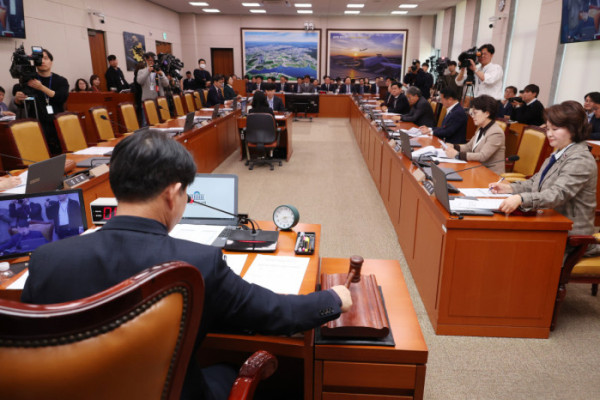 ▲7일 서울 여의도 국회에서 12.29 여객기 참사 진상규명과 피해자 및 유가족의 피해구제를 위한 특별위원회 전체회의가 열리고 있다. 국민의힘 소속 권영진 특위 위원장이 12.29 여객기 참사 피해 구제 및 지원 등을 위한 특별법안이 가결되자 의사봉을 두드리고 있다. (연합뉴스)